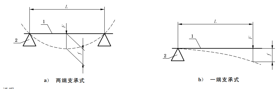 承載人體全部體重的主要支承部件的承載形式可簡化為兩端支承式[見圖1a)]或一端支承式[見圖1b)]。對兩端支承式,在正常使用時的zui大受力處(一般位于中部)表面施加2000N試驗載荷;對一端支承式,在正常使用時的懸臂端部表面施加2000N試驗載荷。當承載面是分開的,則試驗載荷應按比例同時施加在整個承載面的表面區(qū)域,保持5min,測量承載時的變形量,卸載后再測量有無變形,并檢查有無裂紋、破損等現(xiàn)象。
