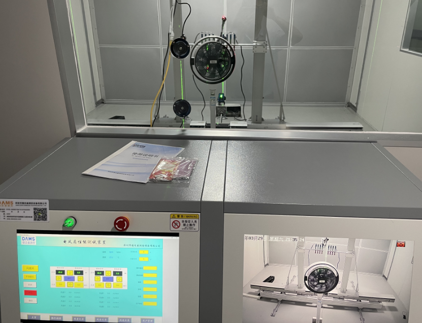 測量時,無葉風(fēng)扇的豎直擺放,搖頭機(jī)構(gòu)和回轉(zhuǎn)機(jī)構(gòu)不工作,并在zui高轉(zhuǎn)速擋位運(yùn)轉(zhuǎn)。